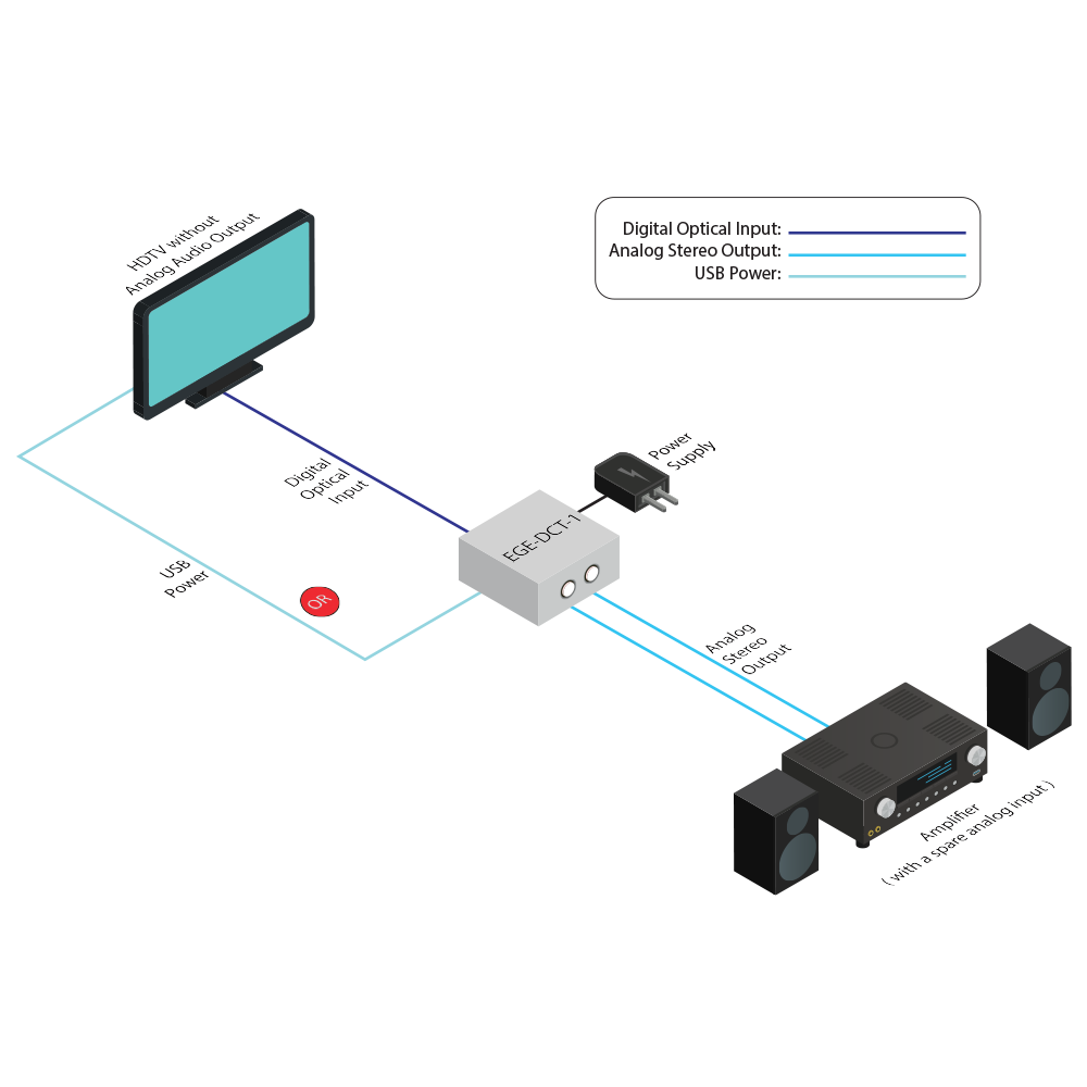 The Optical to Analog Audio Converter (DAC) provides the ideal solution for converting an Optical digital audio signal to analog stereo audio. With support for audio sampling rates up to 192 kHz/24-bit, it provides high quality sound conversion. This unit is perfect for use in, computer audio systems or digital mixing