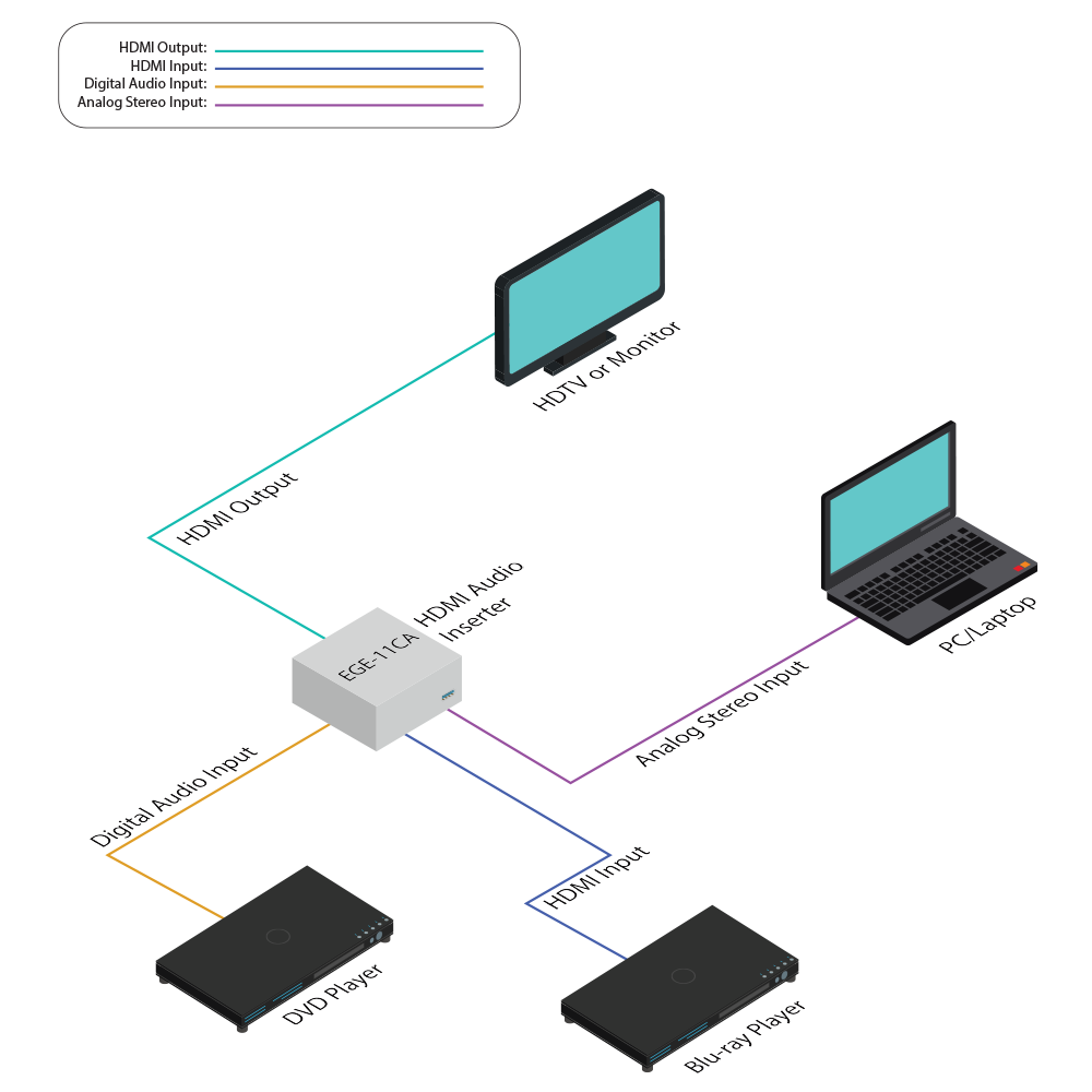 The HDMI Audio Inserter lets you insert an external audio signal into your HDMI or DVI signal path. The unit allows you to insert stereo and multi-channel surround sound signals to give users the capability to select audio formats while extending your HDMI signal.