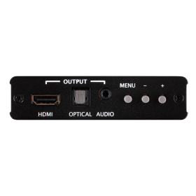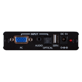This Scaler Box is designed to upscale analog video signal from PC/HD input source to digital HDMI output of wide-range HDTV and PC resolutions, up to 1080p/WUXGA. Besides video upscaling, the scaler box also converts input audio signal from Optical or L/ R to both digital and analog formats, then output to HDMI combining with the video, Optical and phone jack (L/R audio) simultaneously. This unit has a comprehensive OSD menu that allows user to select a variety of output resolutions and adjust for best picture quality.