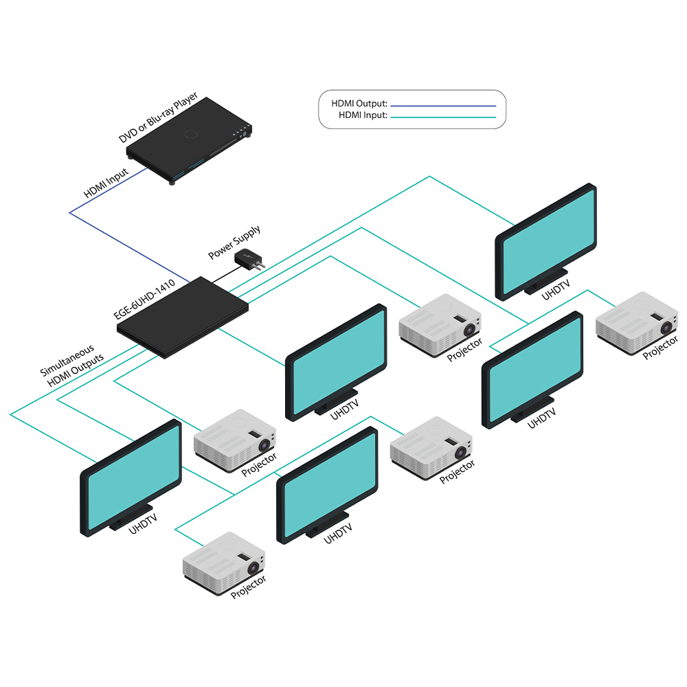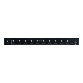 The 1 by 10 HDMI Splitter with HDCP 2.2 is an advanced solution for splitting a single HDMI input to 10 HDMI outputs. It provides high performance audio and video output up to 4K2K@60Hz (YUV444) resolution and is capable of provide high end of audio and video performance. This unit also support HDR (High Dynamic Range Imaging) function, which allows giving more luminance radiance contrasting and colourful pictures for better experience. It supports high resolution digital audio formats such as LPCM 7.1CH, Dolby TrueHD, Dolby Digital Plus, Dolby Atmos and DTS-HD Master Audio, audio sampling rate up to 192kHz. There are input and outputs indications on panel, which will illuminate when detected, system reset function allows the unit to set the TV to it’s default HDMI input.