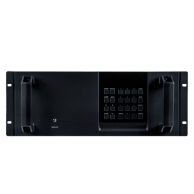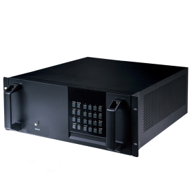 are available now and I/O cards supporting HDBaseT (both with and without AVLC) as well as cards supporting other signal formats and features are under development. The chassis is powered by a pair of high-quality, hot-swappable, load sharing power supplies with an integrated failure alarm system ensuring that mission critical installations can stay online 24/7. Control is via front panel buttons with an LCD menu, WebGUI, Telnet or RS-232.