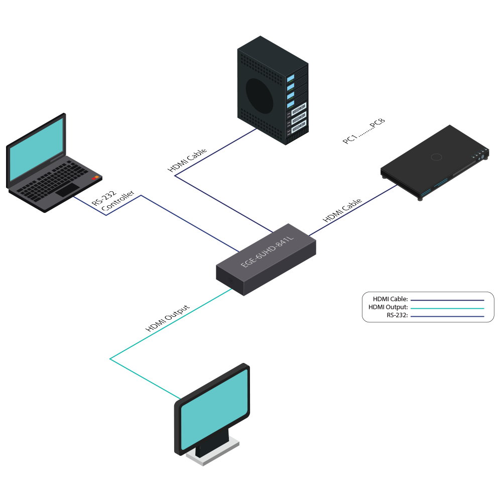 This 4K HDMI Audio Video switch can connect 8 roads HDMI signal sources to an HDMI display. It supports the resolution up to 4K (4096*2160@60Hz 4:4:4), data rate 18Gbps, 3D, color depth up to 12 bits, and distortion-free audio format. The 8 port HDMI auto switch is equipped with an automatic switching mode, which can provide the convenience of automatic switching of signals and an instant switching function, allowing users to easily switch between HDMI signal sources. In addition, users can quickly and easily operate the 8×1 HDMI switch in many ways. For example: through front-panel buttons, two-way RS-232 serial port, IR, and automatic switching functions. This model is suitable for multi-clock application environment, such as: home theater, conference room, trade exhibition hall, shopping mall.