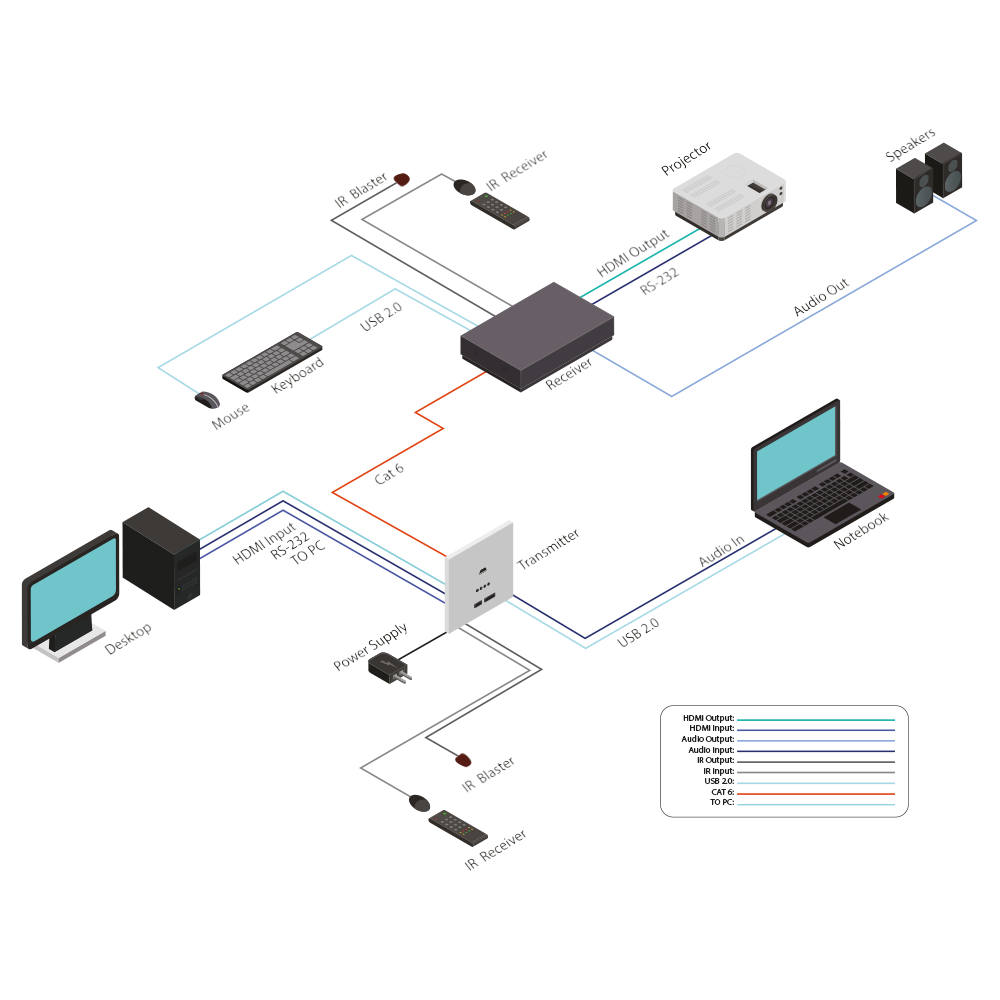 The 4K60 HDMI/USB-C 2×1 HDBT Wall-plate Transmitter supports one HDMI input and one USB-C input within a standard 86mm×86mm wall box. It can transmit HDMI high-definition signal, bidirectional IR control signal, bidirectional RS-232 control signal and USB 2.0 signal over CAT6 to the distance up to 328ft/100m (HBT mode) or 492ft/150m (LRM mode). Video resolution is up to 4K2K\@60Hz (4:4:4). This product converts HDMI signal to standard HDBaseT signal and transmits it through LAN cable. It can easily control signal source device or display device from the remote end through bi-directional IR signal passthrough function. It also supports POC function with POC control switch. The Extender can be widely used in other fields such as video conference system, multimedia signal broadcasting, HDMI signal extension, etc.