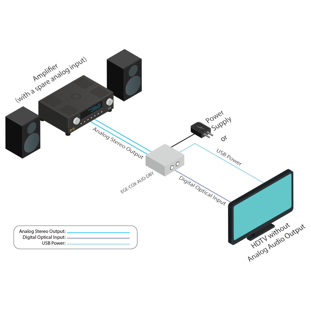 The Optical to Analog Audio Converter (DAC) with Dolby® Digital Decoder provides the ideal solution for converting an optical digital audio signal to analog stereo audio. With audio sampling rate support up to 48 kHz (Dolby Digital)/96 kHz (LPCM) and I/O data rate support up to 24-bit, it provides high quality sound conversion. The Dolby Digital Decoder function guarantees that Dolby digital audio signals are downmixed to analog stereo without loss of quality. This unit is perfect for use in computer audio systems or digital mixing consoles and can be powered from any spare USB port allowing it to be used with USB equipped HDTVs, Bluray players or computers without the need for a separate power supply.