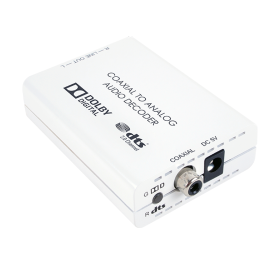 The Coaxial to Analog Audio Converter (DAC) with Dolby® Digital & DTSTM 2.0 Decoder provides the ideal solution for converting an coaxial digital audio signal to analog stereo audio. It provides high quality sound conversion. The Dolby Digital & DTS 2.0 function guarantees that Dolby digital/DTS2.0 audio signals are downmixed to analog stereo without loss of quality. This unit is perfect for use in computer audio systems or digital mixing consoles
