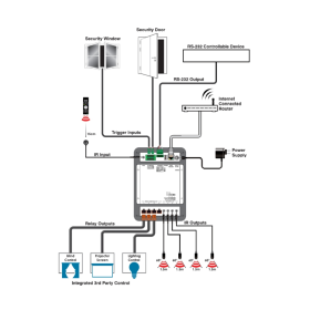 This Control System Center is ideal for a user who has a wide variety of devices that need to be controlled. It comes with eight external trigger connections which directly activate 8 (of 16 total) user defined macro events stored within the unit. All 16 macros are available to be activated via the WebGUI, or by Telnet. Those user defined macros can send commands to remote devices via Ethernet, IR (×4), relay trigger (×4), or RS-232/422/485 (×1) allowing for the control of a large array of devices at the push of a button. An integrated IR code learning function is also available, allowing the user to store and retransmit the IR codes sent by nearly any standard IR remote. Comprehensive user control interfaces are available including WebGUI, Telnet and console (RS-232 in). Last but not least, this unit supports Power over Ethernet (PoE) allowing it to be powered directly from a standard PoE network switch, without the need for an external power adapter, allowing for incredible installation flexibility.