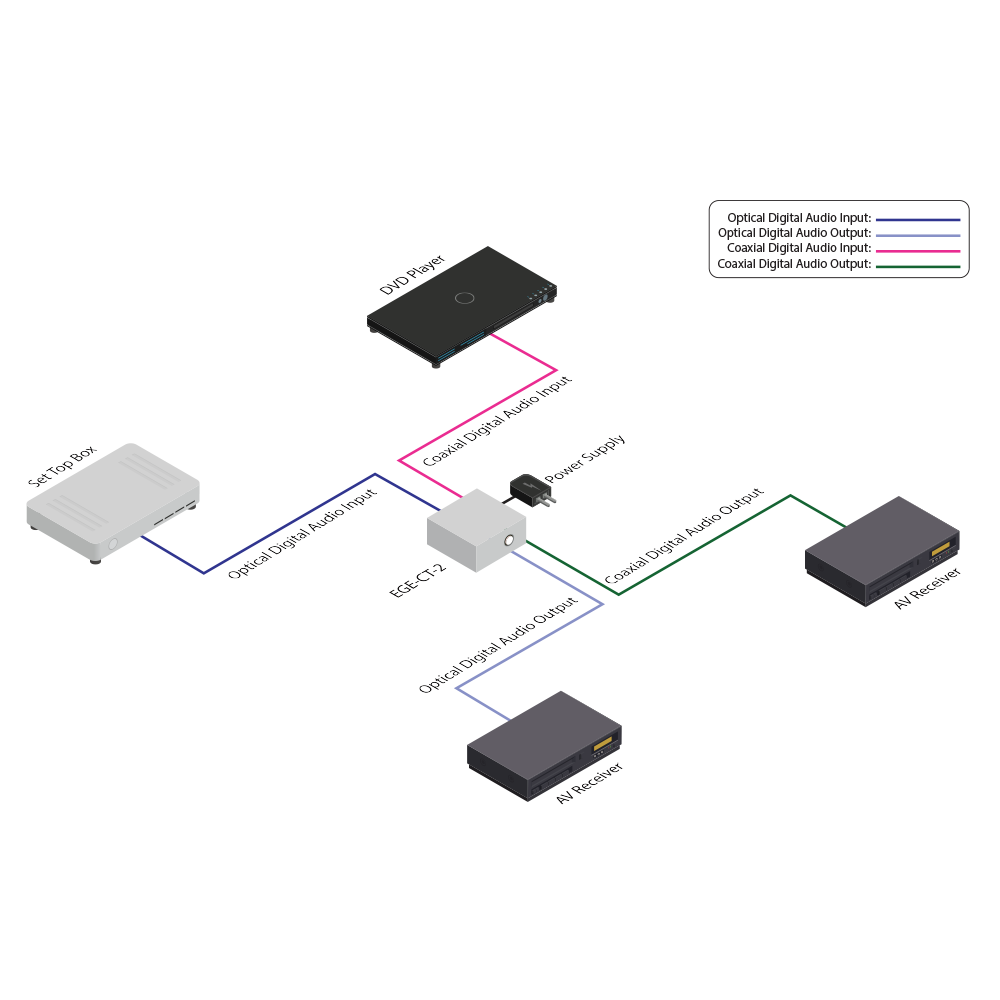 - Supports 2-way conversion coaxial to optical/optical to coaxial