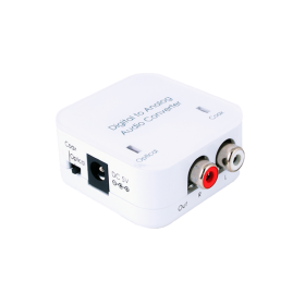 The Digital to Headphone Audio converter is an easy to use device that converts and amplifies (200 mW Cap-Less) Coaxial or Optical digital audio into analogue headphone audio. This device can switch between Coaxial or Optical sources and also has a convenient volume control