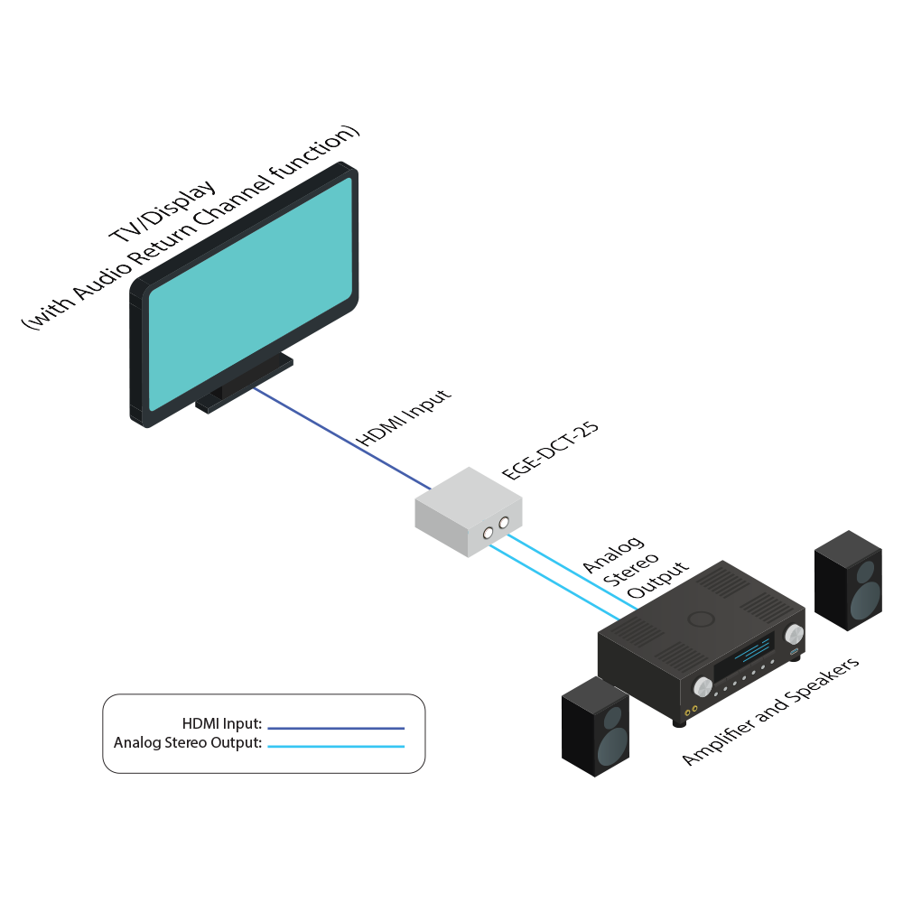 amplifiers, AV receivers or active speakers. It supports HDMI audio sampling rates up to 192 kHz and analog stereo (2 CH) audio output.