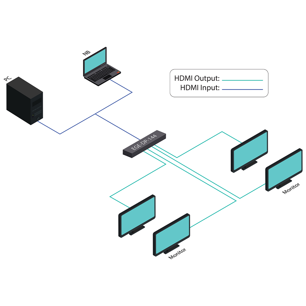 The DisplayPort (DP) 1 by 4 splitter allows single DP source to be display on four DP input monitors simultaneously. It supports video resolution up to 2560 x 1600 and audio up to PCM 7.1 switch provides a fast switch between source and display and save EDID’s reading sink time to allow image display properly. The DP 1 by 4 splitter is an ideal device for your DP source to multi display