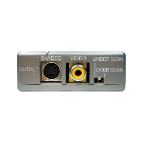 The PC to Video scan converter box is designed to convert a variety of analog computer images, from VGA to WUXGA, to interlaced NTSC or PAL video. With frame rate conversion and Overscan / Underscan features that allows users to view PC source on the Composite and S-Video monitor without image cutting off.