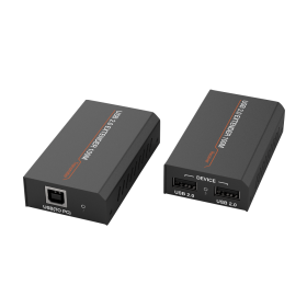 The USB 2.0 Extender can extend USB signal up to 100m / 328ft via a single Cat5e/6 cable. In the transmitter, the USB-B port is connected to a PC. In the receiver, you can connect a device with USB port (such as U disk or printer, etc.) through the two USB ports. Both Transmitter and Receiver support PoC (Power over Cable) function. The product can be widely used for long distance signal transmission between a PC and USB device. Simple plug and play, no drive and installation setting required.