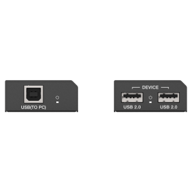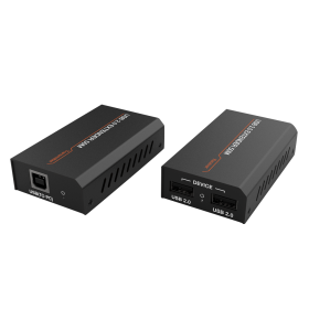The USB 2.0 Extender can extend USB signal up to 50 meters / 164ft via Cat 5e/6 cable (The transmission distance can only up to 40 meters / 131.2ft for some USB 2.0 Hub ). In transmitter, the USB-B port is connected a PC. In receiver, you can connect a device with USB port at the two USB ports such as U disk or printer, etc. In addition, you need to connect 5V/1A power supply to receiver. The product can be widely used long distance signal transmission between a PC and USB device. Simple plug and play, no drive and setting installation required.
