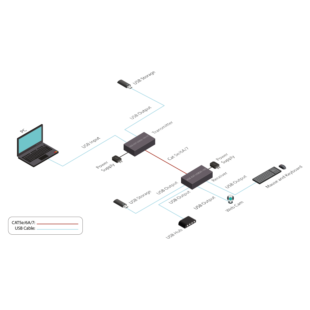 This USB 3.2 Gen1 extender set is designed to extend signal from one USB host to multiple USB devices for up to 100 meters (328 feet) when paired with the transmitter from the homologous series. This receiver enables users to extend up to 4 USB 3.2 devices remotely, such as flash drives, keyboards and USB cameras. With an adapter, USB-C port supports 5V/3A power and USB-A ports provide 5V/0.9A power to USB devices. The unit also supports a hotkey for convenient firmware update from the transmitter side.