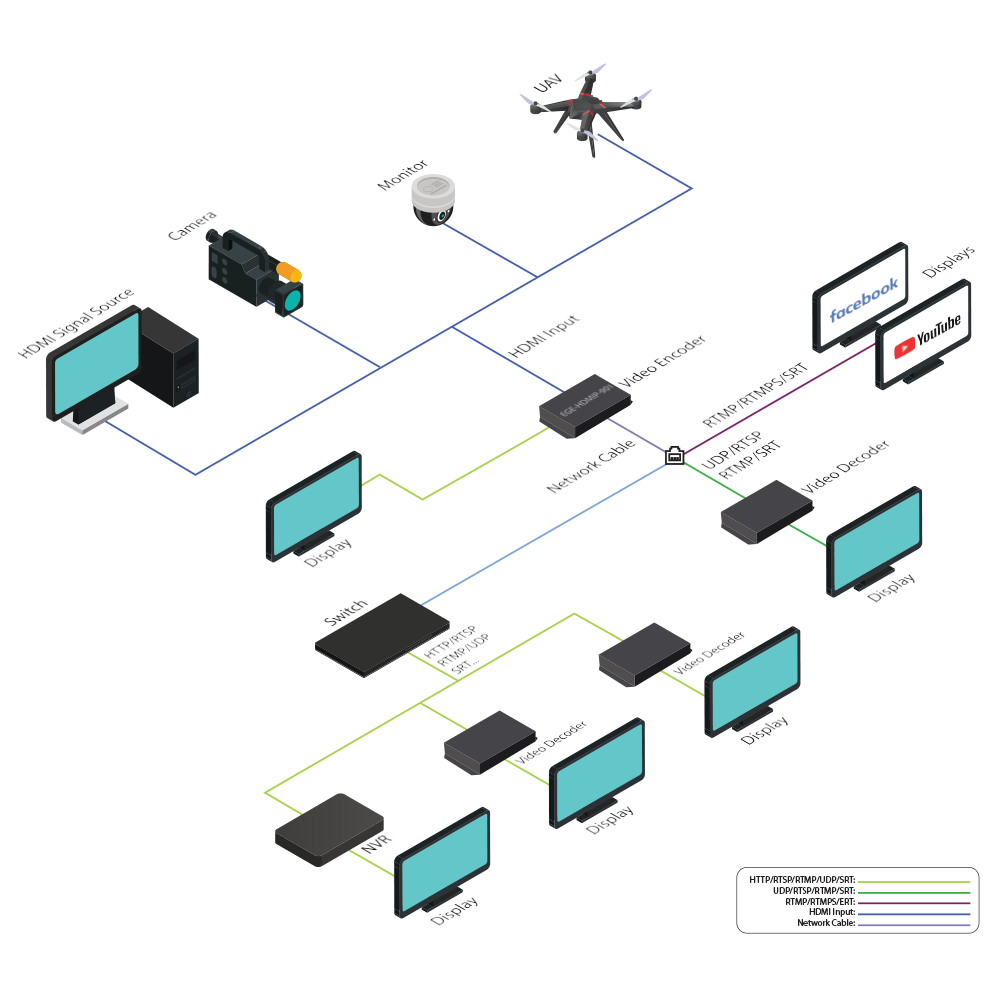 EGE-HDMIP-901 is a professional hardware video and audio encoder. Which designed to meet the HD/1080P@60 Video transmission applications. It supports H.265 (HEVC)/H.264 high-performance encoding. Also, it supports the most protocols including HTTP/SRT/RTMP/RTMPS/HLS/ UDP/RTSP/Onvif, etc. It’s high integration and cost-effective design make this device widely used in the variety of field such as CATV digital head-end, hotel IPTV system, live streaming broadcast, streaming media server etc. Also, the encoder works with the online live broadcast platform, such as YouTube, Ustream, Twitter, WOWZA, Facebook Live, etc.