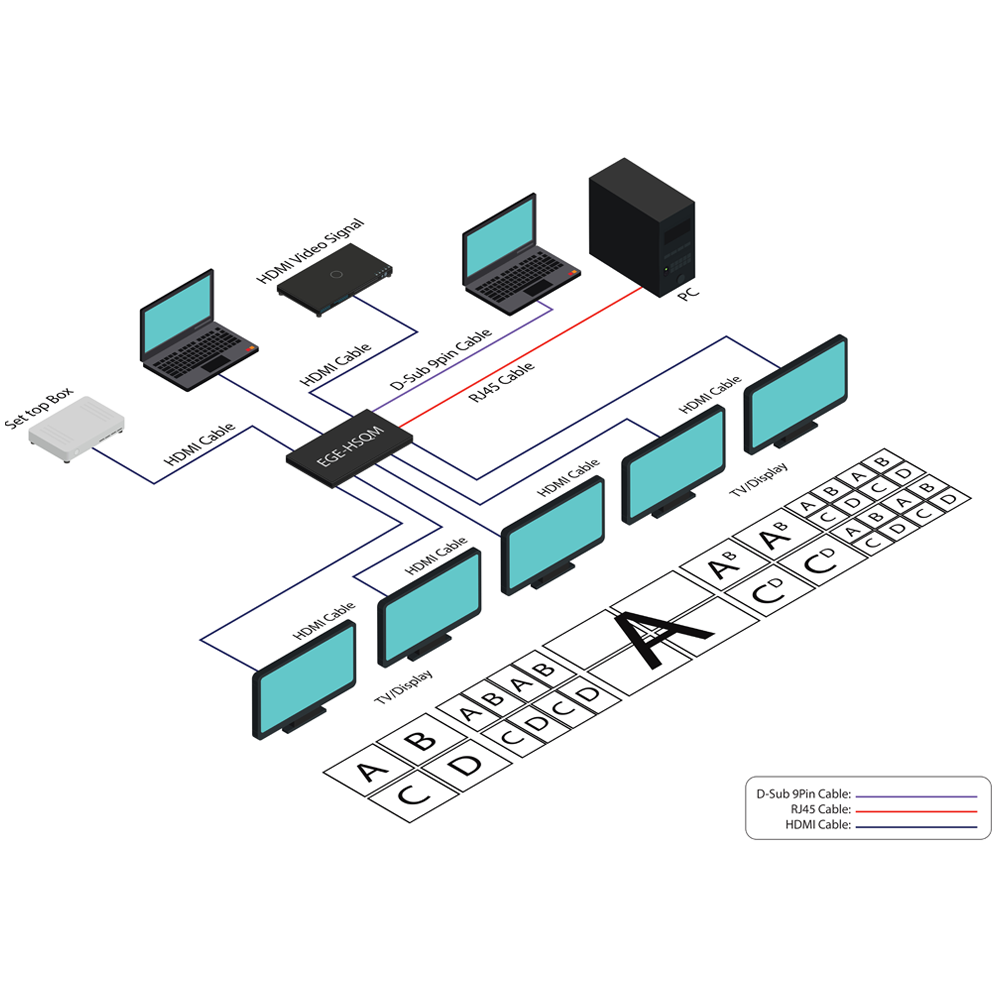 The 4 by 4 HDMI Seamless Matrix Switcher allows the signal from 4 dif- ferent input sources to be freely selected and arranged on 4 displays (TV or monitor), providing four output modes (Matrix, Dual PoP/ PiP, Quad and TV Wall) for various applications. Matrix mode routes the source signals to output displays as regular matrix does, Dual mode allows 2 sets of 2 selected sources to show on designate output dis- plays with PoP and PiP method and TV Wall mode extends a selected source to display on all 4 output displays as one. The device supports video timings up to WUXGA@60RB and 1080p@60Hz, audio format up to 7.1CH LPCM at 192kHz sampling rate based on input source EDID. For all the opera-tion/control can be done through IR, remote control, Telnet, WebGUI, RS-232 or front panel buttons. GERATECH EGE-HSQM 4IN 4 OUT KONTROL CIHAZI 1.897,50 $