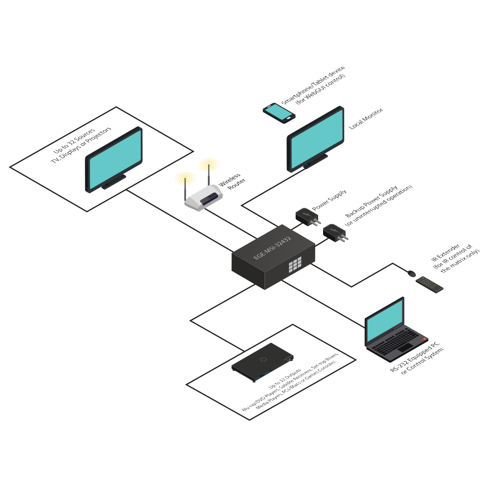 The 32 by 32 Modular Matrix is designed to allow the switching and distribution of up to 16 source devices to up to 32 connected displays, either directly via HDMI, DVI or via CAT5e/6/7 outputs to compatible receivers, providing control options (dependent on module configuration). Providing unparalleled levels of flexibility, with an advanced modular design these models can be setup in a wide variety of combinations allowing users the ability to tailor the Matrix to their requirements by simply adding or removing the input or output modules as required. The Modular Matrix is supplied with dual removable internal PSU’s which allow for easy inspection and maintenance with zero down time. Also included is a DVI output for local monitoring of the output allowing installers to easily monitor, test, and configure the Inputs and Outputs on installation. In addition, this matrix also features IP control allowing users to access and control the matrix remotely and also allow additional options for integration of third-party control systems.
