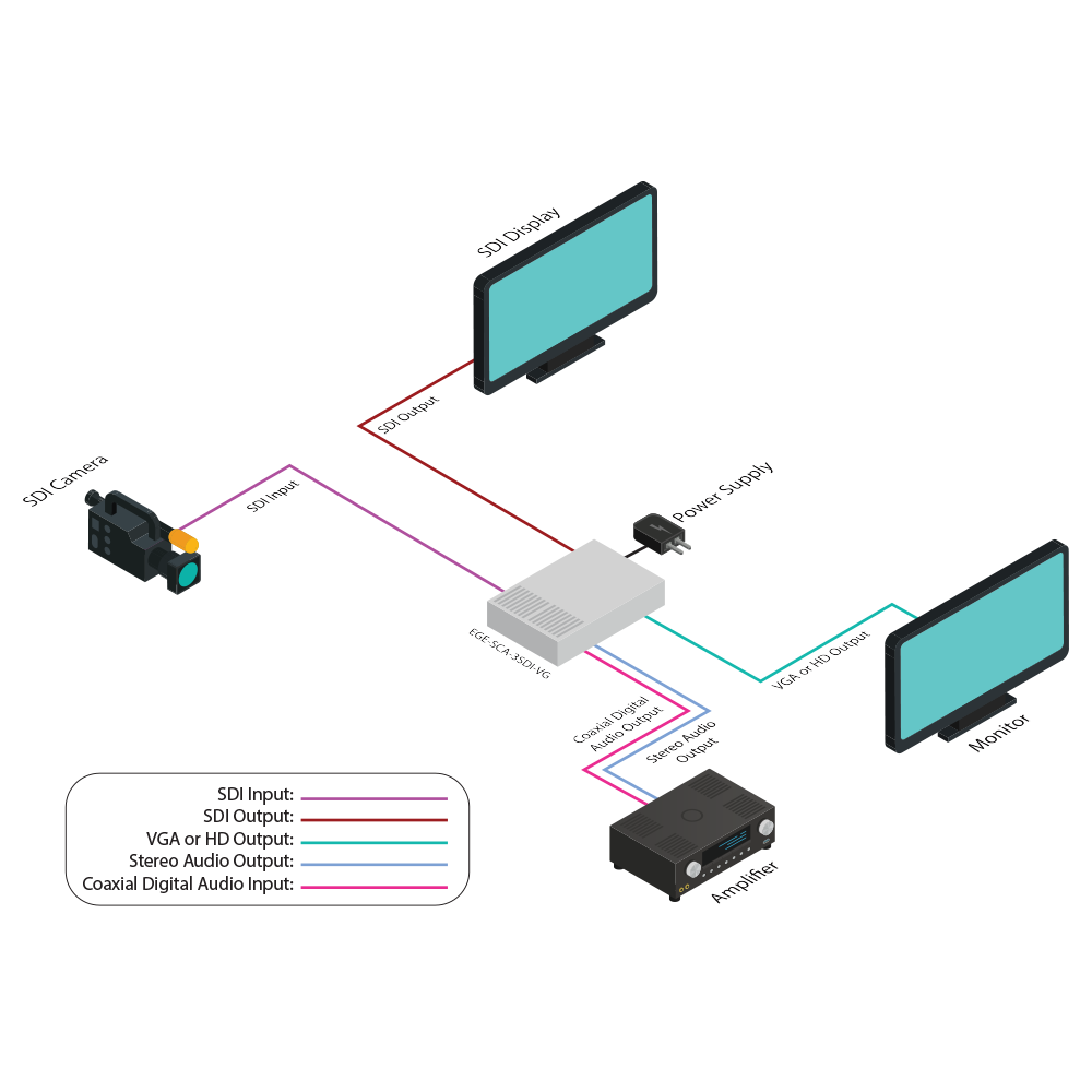 The SDI to VGA Scaler allows SD, HD and 3G-SDI signals to be shown on PC/HD display. This means that it is now easier for professionals to distribute and extend their SDI signal while giving the ability to display work on PC/HD display. Furthermore, thanks to coaxial (S/PDIF) and L/R audio outputs users can output audio in both digital and analog formats while the loop-through 3G-SDI design benefits users by letting them simultaneous show content on both SDI and PC/HD displays.
