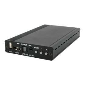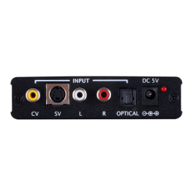 This Scaler Box is designed to upscale analog video signal from CV/SV input source to digital HDMI output of wide-range HDTV and PC resolutions, up to 1080p/WUXGA. Besides video upscaling, the scaler box also converts digital/analog audio signal to digital/ analog formats, then output to HDMI combining with the video, Optical and phone jack (L/R audio) simultaneously. This unit has a comprehensive OSD menu that allows user to select a variety of output resolutions and adjust for best picture quality.