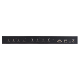 The 4 by 4 HDMI 4K UHD Matrix is capable of switching and routing an HDMI signal from any of its four sources to any of four connected HDMI displays, allowing any source to be shown independently on any display. It supports 3D, ‘Deep Color’ and high-definition lossless audio formats. Control of inputs and outputs can be easily operated through the on-panel buttons, IR remote control, RS-232 or Telnet/WebGUI control
