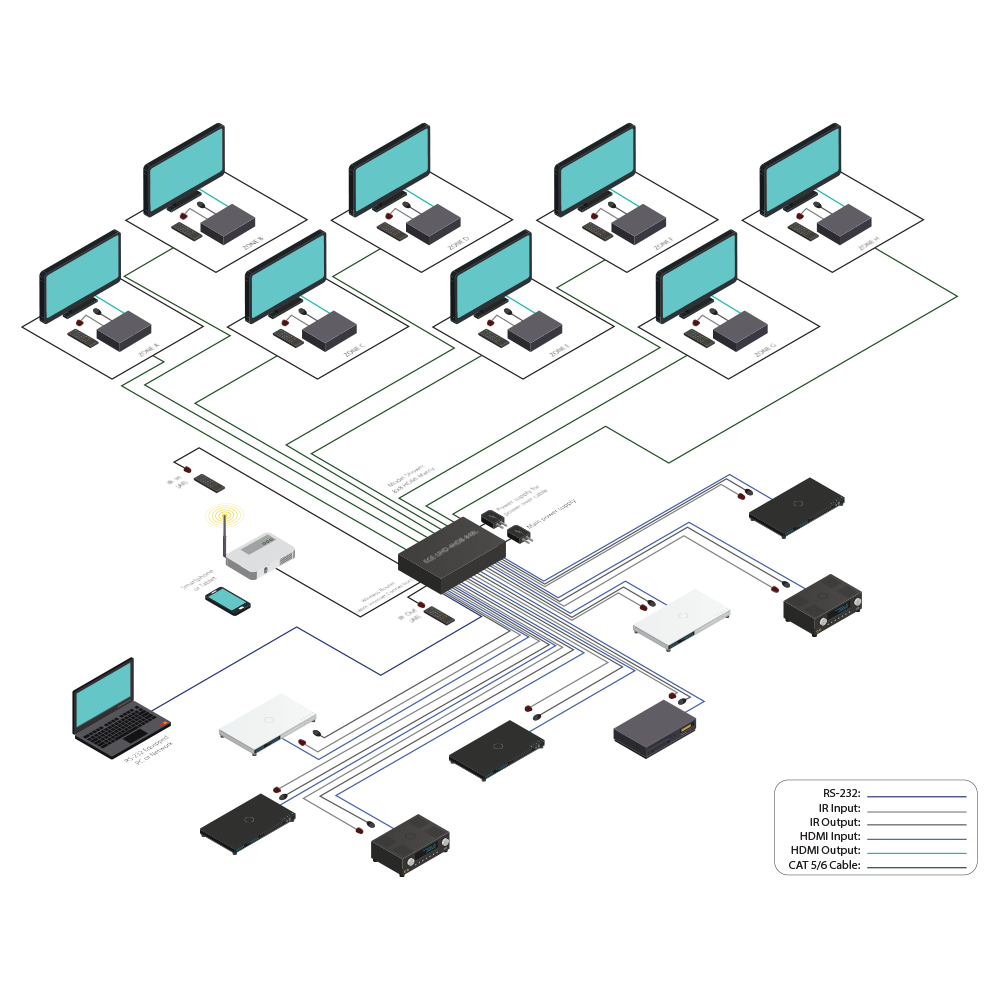 The 4K2K 8 by 8 HDMI Matrix over CAT5e/6/7 supports the transmission of video (resolutions up to 4K2K Full HD), multi-channel digital audio and control via IR, RS 232, Telnet or Web GUI from eight high definitionsources to eight outputs over a single CAT5e/6/7 cable (up to 60m) for each output. It supports high resolution digital audio formats such as LPCM 7.1CH, Dolby TrueHD, Dolby Digital Plus and DTS-HD Master Audio as well as 3D content that can be displayed when connecting a 3D TV and 3D source.