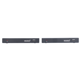 This 18Gbps HDMI Extender can extend high definition video / audio signal, RS-232, bi-directional IR, and the distance is up to 492ft / 150 meters between transmitter and receiver via a single CAT cable. It supports resolution up to 4K2K@60Hz 4:4:4, 18Gbps and HDCP 2.2. One HDMI loop port is available for output. It also supports de-embeded audio for L/R audio output and PoC function. In addition, the extender is equipped with two-way IR pass-through which allows for source and display control. This HDMI extender includes two units: transmitter unit and receiver unit. The transmitter unit is responsible for capturing HDMI input signal and carrying the signal via one cost effective Cat5e/6 cable, and transmitting / emitting IR control signals. The receiver unit is responsible for receiving the HDMI signal and transmitting / emitting IR control signal. The extender offers the most convenient solution for HDMI extension via a single Cat5e/6 with long distance capability, and is the perfect solution for any application.
