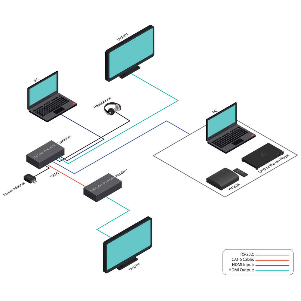 The 5×2 Seamless Presentation Switcher provides 3×HDMI, 1×DP and 1×USB-C (video only) inputs, 1×HDMI and 1×HDBaseT mirrored outputs with PIP/PAP/Tri/Quad-view Multiview functionality. It supports single screen seamless switching with no freezing, black or snow screen. One 3.5mm audio de-embedding jacket can output analogue stereo audio. User can use Front Buttons or RS232 commands to control the switcher.