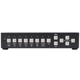 The 5x Inputs and 2x Outputs seamless multiview video switcher with USBKVM control was developed for the purpose of multiple sources displayed on a single screen. It supports high input and output resolutions (up to 3840 x2160@60Hz). The switcher can combine up to four video signals onto a single UHD or HD displayer. The switcher supports 4x USB-Type B inputs which are connected to PC and 2x USB-Type A outputs which are connected to Mouse and Keyboard. User can easily manage the switcher via the front panel buttons, IR remote, RS-232 or TCP/IP commands. The HDMI B mirror output port can be used for audio amplifier, video capture (with HDMI to USB dongle), or remote display (with HDBaseT Extender). This multi-functional product can be widely applied in a variety of fields, such as Home Theatre, Video Conference, Security Monitoring, Presentation and Broadcasting, Teaching System, Financial Stock Analysis, Game E-Sports, Medical Display.