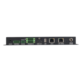This IP Master Controller is a powerful and exible solution for controlling multiple SDVoE (Software De ned Video over Ethernet) based extenders within same network. The user only needs to install this unit into the same local network as the extenders (transmitters and receivers) to easily de ne and con gure channel routing selections (including video, audio, and a variety of control interface types) using the WebGUI. Without the use of this centralized control unit, each transmitter and receiver pair would only be able to function in a point-to-point capacity. Additionally, this unit supports controlling and con guring the matrix, video wall, and multiviewer modes of connected SDVoE units. The settings of all connected transmitter/receiver units, including IP con guration, compatibility settings, and extender status are clearly displayed within the WebGUI. A trigger input interface is also provided to allow the easy addition of a remote control keypad, or other trigger-supporting products, which can be installed within a podium or table in a conference room or classroom. This interface can allow the user to activate stored macros with the simple press of a button. Standard control is available via WebGUI (remote or local), RS-232, Telnet and IR Remote.