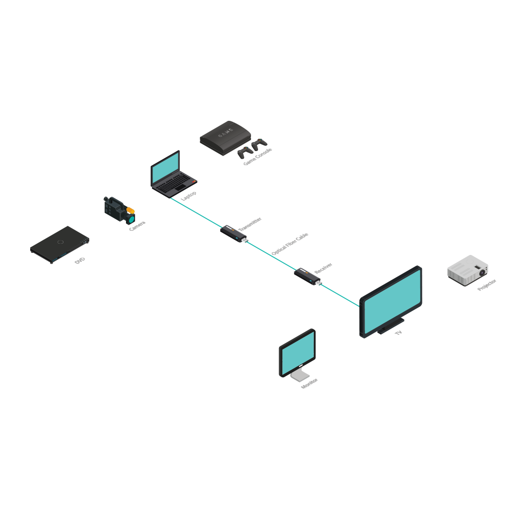 This 4K60 HDMI over Fiber Extender can extend HDMI signal up to 300m/984ft over an OM4 multimode single optical fiber cable. The resolution is up to 4K60 4:4:4. It supports HDMI HDP/DDC/CEC/ARC transmission. The transmitter features one HDMI input, one LC fiber optical output and one Micro USB power supply port (transmitter also can be powered by the connected HDMI source device). The receiver features one HDMI output, one LC fiber optical input and one Micro USB power supply port. This product has the advantages of strong anti-interference, high safety performance, small size and light weight, and has incomparable advantages in long-distance transmission.