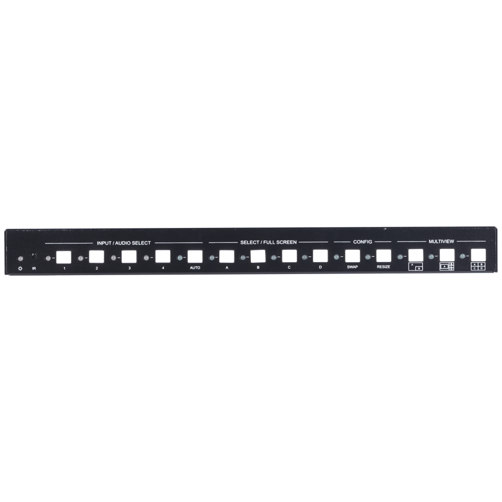 The 4K Multi-view switcher is seamless video scaler designed to enable a true 4K display. The switcher features four HDMI inputs and one HDMI output which allows you to display four video sources on one display. It also provides a line input, 1 mix input, 1 SPDIF output and 1 analog output for audio processing. Control is quick and comprehensive, whether you are using the front panel, the remote control, RS232 commands, or the fully featured web GUI.