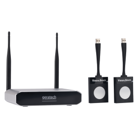 The WUHD-MR300 is a wireless presentation kit with 1 Base unit 2 WUHD-MRTX It allows up to 16 WUHD-MRTX connect to Base-Unit simultaneously and, with maximum 9 users sharing at a time. User can share content from their laptops ormobile devices on a large meeting room screen in a very simple waywithout cables and additional configuration, just by clicking the button and airplay for iPhone. It makes meeting more eficient and productive.