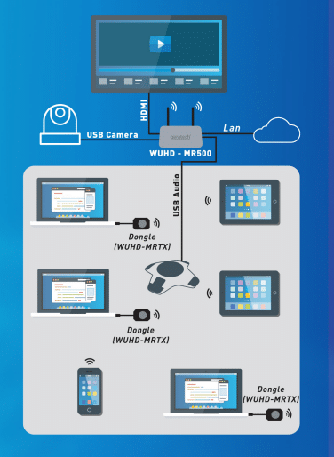 - 16 USB Dongle support (max.9 screen sharing at the same time)